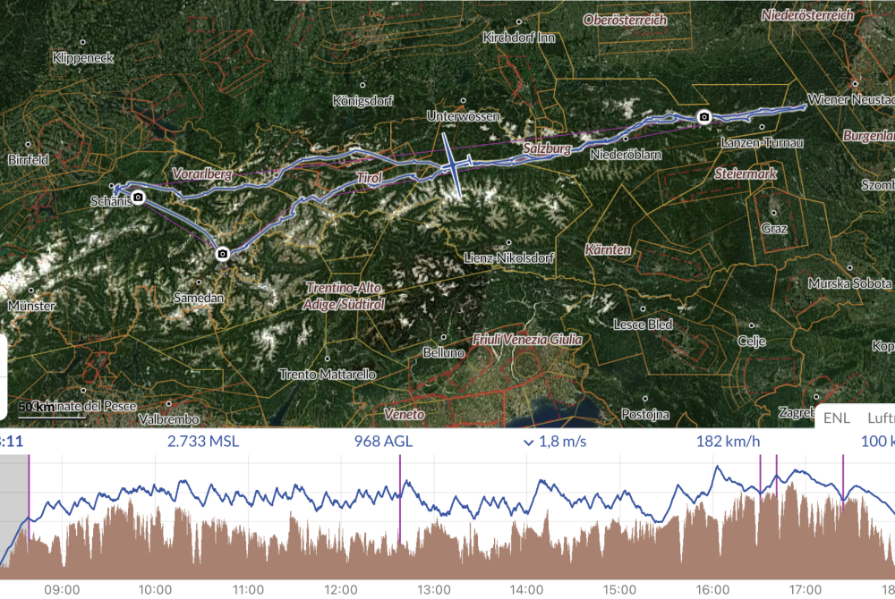 Unsere Piloten fliegen über den gesamten Alpenraum von Südfrankreich bis weit in die Ostalpen mit Distanzen von über 1000 km am Tag. Aber auch lokale Flüge in den Glarneralpen, nach Graubünden, ins Mittelland oder nach Süddeutschland sind bei unseren Piloten beliebt.