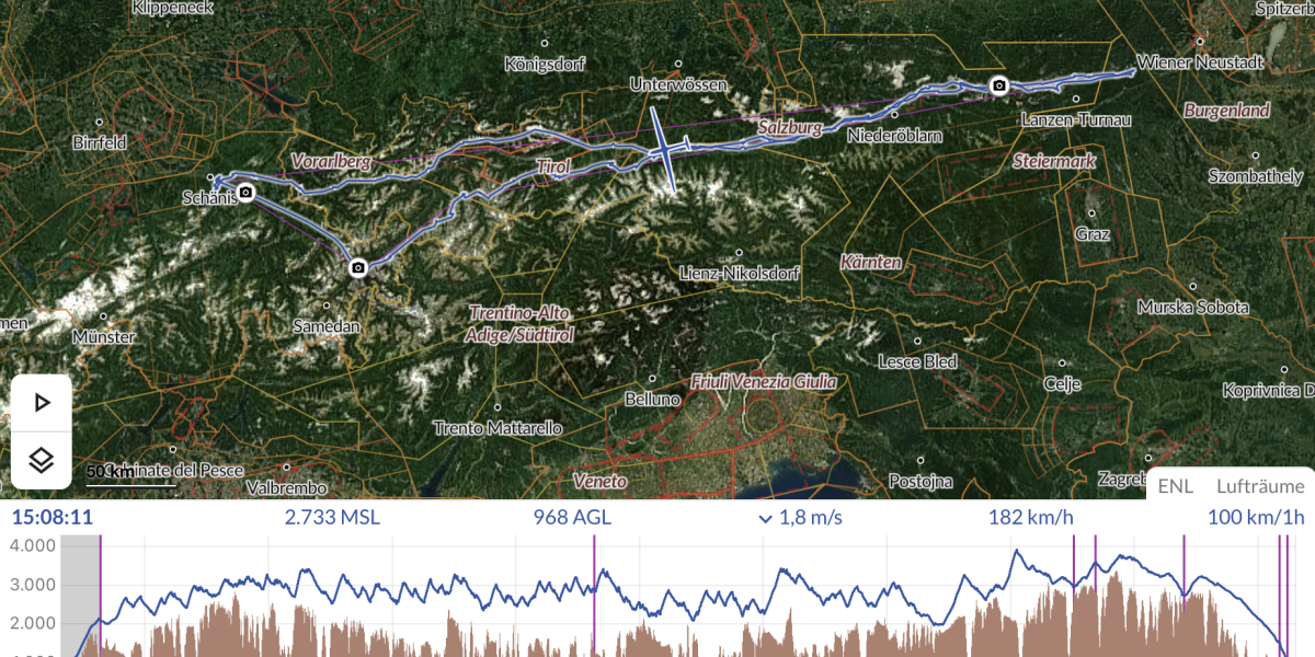 - Unsere Piloten fliegen über den gesamten Alpenraum von Südfrankreich bis weit in die Ostalpen mit Distanzen von über 1000 km am Tag.